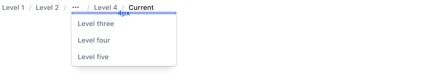 The gap between the breadcrumb and dropdown menu when opened is 4px.